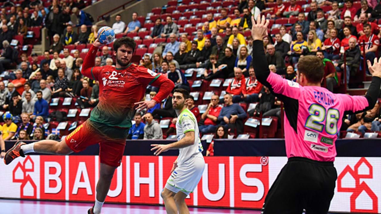 jogo disputado num campo retangular, geralmente coberto, por duas equipas de sete jogadores que, usando apenas as mãos, procuram introduzir a bola na baliza adversária, defendida por um guarda-redes que é o único jogador com permissão para usar os pés, desde que esteja no interior da área de golo