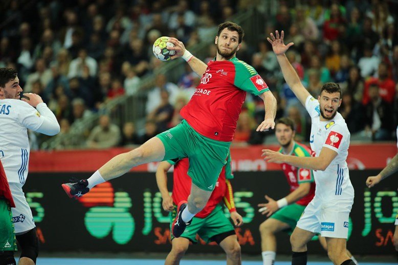 jogo disputado num campo retangular, geralmente coberto, por duas equipas de sete jogadores que, usando apenas as mãos, procuram introduzir a bola na baliza adversária, defendida por um guarda-redes que é o único jogador com permissão para usar os pés, desde que esteja no interior da área de golo
